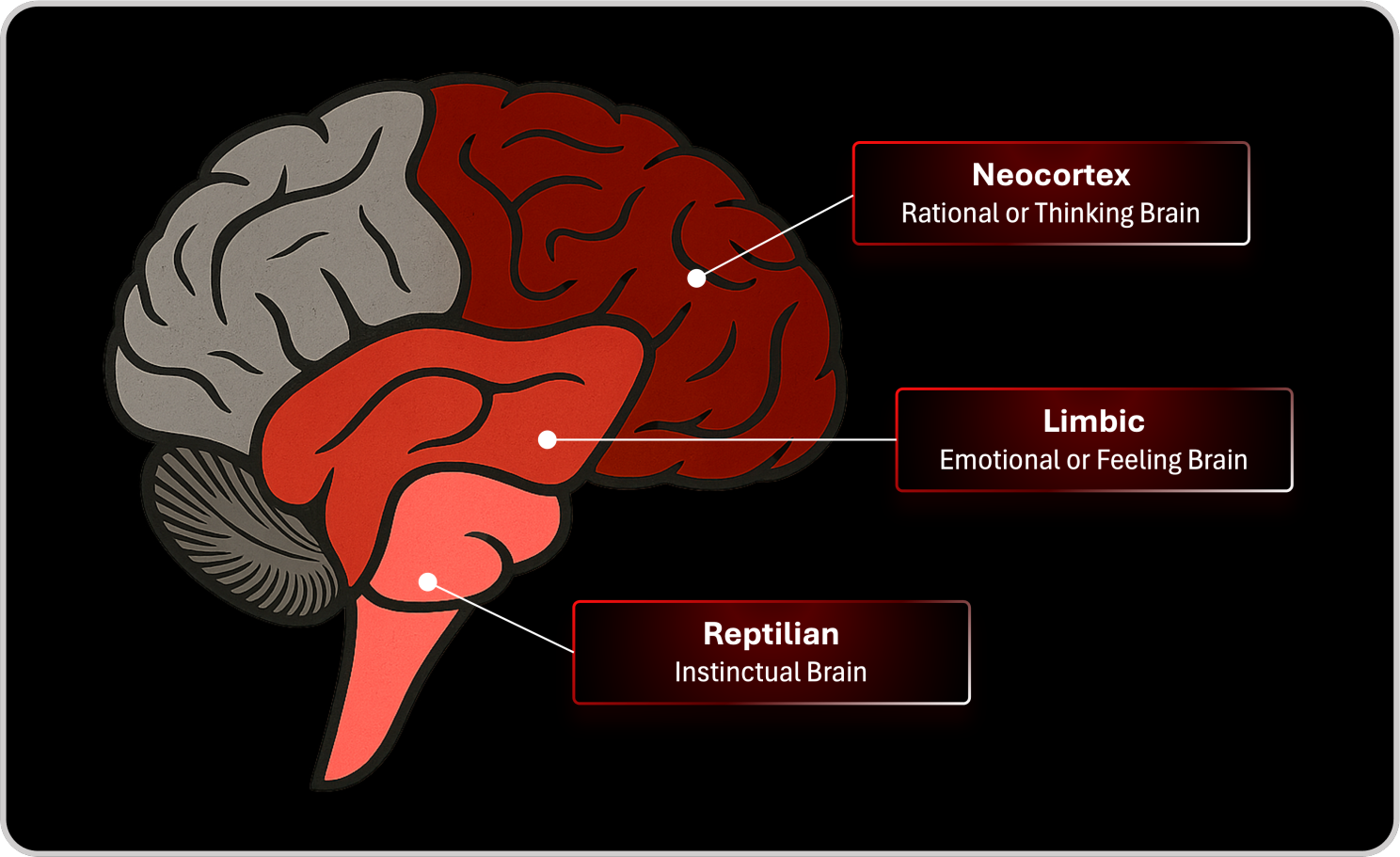 I have always been curious about how the human brain makes decisions, how we think, speak, and act in ways that feel coherent, and why sometimes those three layers fall completely out of sync. There are moments when we think one thing, say another, and act in a way that contradicts both, revealing that our internal architecture is far more layered and complex than we consciously perceive. The classical model that divides the brain into the neocortex, the limbic system, and the reptilian brain helps explain this tension. The neocortex is the rational and analytical layer, the part that evaluates information, reasons through complexity, and constructs logic. The limbic brain governs emotion, intuition, motivation, and social connection, shaping how we value things, what we fear, and what we prioritize. The reptilian brain is the instinctive core, the ancient survival system that reacts instantly to threat, long before the rational mind can analyze what is happening. These three layers coexist, influence one another, and sometimes conflict, but together they form the architecture that allowed humanity to evolve, innovate, and survive.